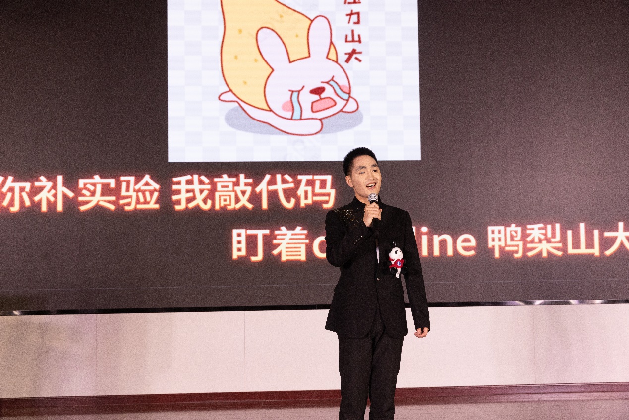 节目间隙穿插的互动环节,更是将现场气氛推向高潮。007游戏、旋转抓鸭挑战中,同学们踊跃参与、默契配合,欢声笑语不断;知识问答紧扣研究所发展历史与学科特色,师生们踊跃抢答,在轻松氛围中加深了对研究所的归属感。