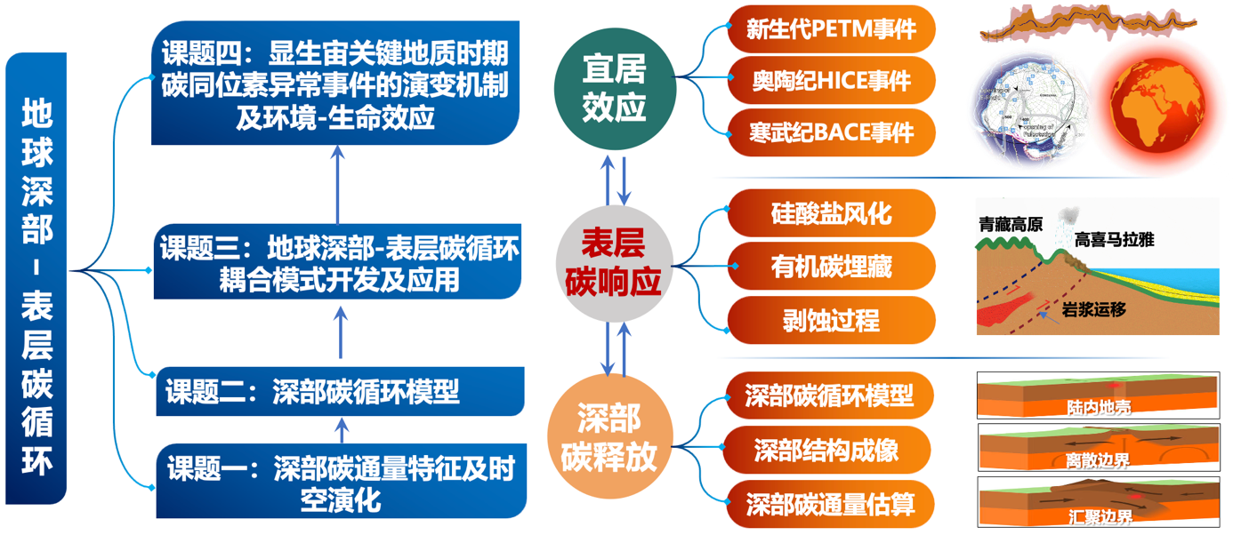 研究团队以地球系统科学思维为指导,将重点突破深部碳驱动与表层碳响应之间的耦合机制。在深部碳循环方面,项目组基于大数据与人工智能技术,整合前期积累的深部地球物理、地球化学及地质观测数据,构建统一的深部碳通量数据库,并解析其时空演化规律及碳迁移路径。在表层碳循环方面,研究重点围绕硅酸盐风化和碳埋藏过程展开,通过高分辨率古气候记录与数值模拟,量化风化剥蚀对大气 CO2浓度演化的影响,定量模拟气候与风化系统对CO2浓度突变的响应和韧性。