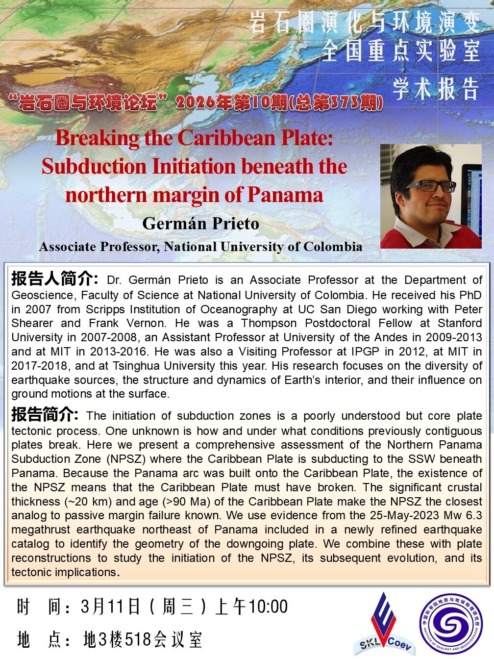 【3.11】岩石圈与环境论坛:Germán Prieto 副教授