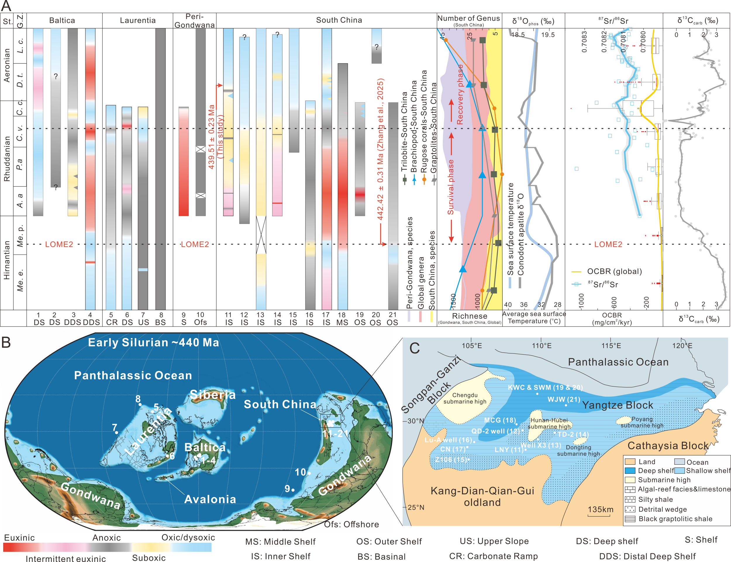 与地质历史中多数大灭绝事件之后生物快速再辐射不同,晚奥陶世大灭绝后的生命复苏异常缓慢且呈现显著的区域差异,然而其控制机制仍缺乏系统认识。有研究显示,广泛的海洋缺氧是晚奥陶世大灭绝之后生命复苏受阻的关键因素之一,但志留纪早期海洋氧化还原环境如何在时...