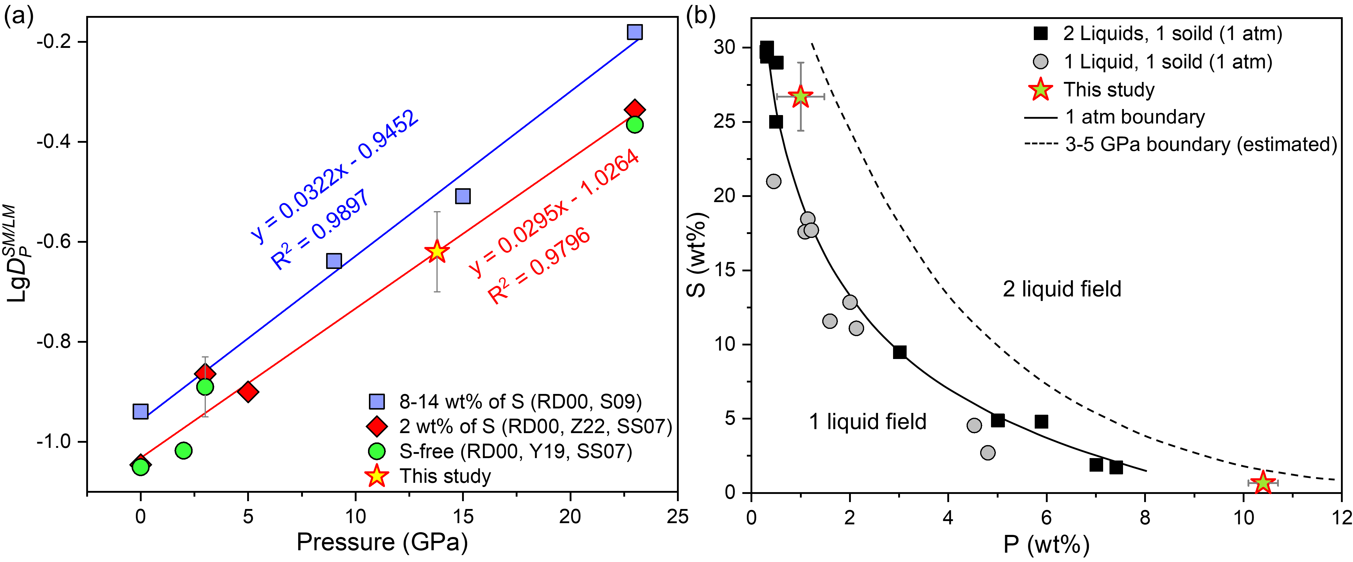 (3)二次相分离(P-S熔体不混溶):残余的P-S熔体在压力进一步降低至1 bar-3 GPa、温度降至1000-1100 ℃时,再次发生不混溶,分离形成富S球粒和富P基质。