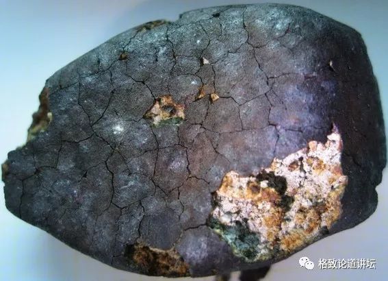 表面的这层玻璃厚仅约一毫米,跟陨石内部完全不一样,所以很好区分。另外,这层玻璃往往会龟裂成多边形,时间长后会非常明显。