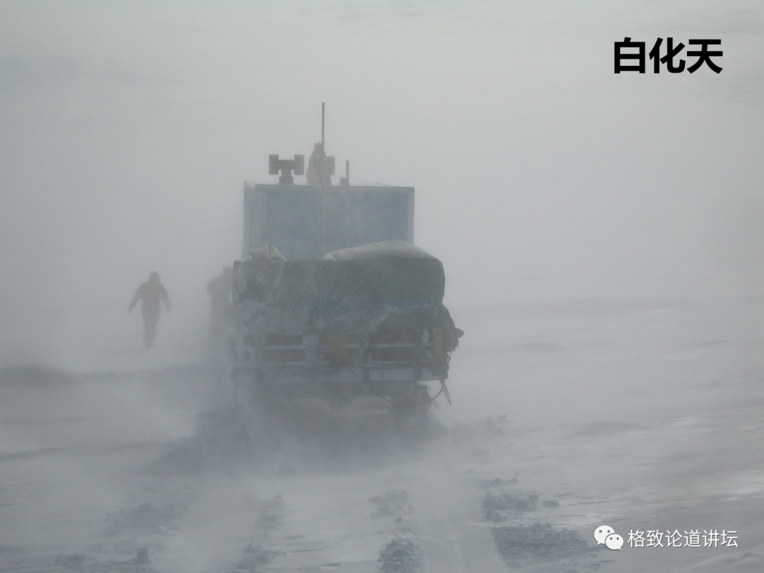 在南极遇到的困难之一是白化天,天地白茫茫一片,不仅什么都看不见,还会失去方向感。