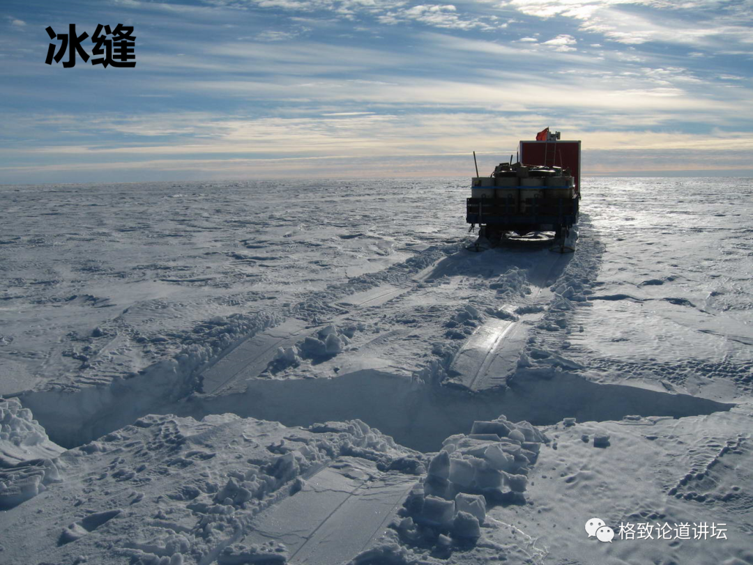 最危险的是冰缝,因为冰缝被雪盖住了,实际上是看不见的,只有车子从上面轧过去才显露出来。