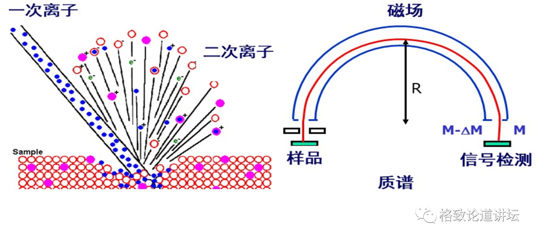 这个仪器会形成一个非常细的,小到50纳米的一次离子束,去轰击样品的表面。轰出来的二次离子通过一个磁场时会发生偏转。质量小的偏转大,所以不同质量的离子就能分开,然后用接收器分别记录信息的强弱。这样就能得到样品的水含量和D/H比值。