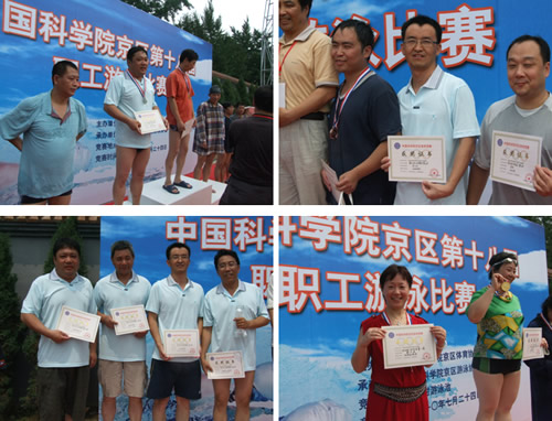 八点整鸣枪开赛,京区共有50个单位600多名运动员参加本届赛事。我所派出以苏军同志为领队的十六名运动员参赛。经过紧张激烈的比赛,地质地球所共获得两项第一、三项第二、两项第三、一项第四、两项第五,总分69分的可喜成绩。同时获得此次赛事的优秀组织奖。这个成绩的取得得益于所领导的支持,参赛队员所在部门的配合,更重要的是地质地球所游泳协会的全力合作,经过一段时间训练才有今天这样的好成绩,为此,我们向他们表示感谢和祝贺!