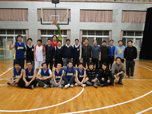 为营造积极,健康,活跃的科研环境,强健教职工与学生的体魄,2010年12月25日(圣诞节)下午17:00,我所工会和教育处在北京体育大学组织了一场教职工与08级研究生篮球友谊赛。双方阵容:工会(徐龙涛,徐涛,钱青,张扬,俞良军,张晓晖,苏哲,刘德庆,邓阳凡)。学生(黄小刚,郑勇,周楠楠,孙涛,姜磊,张舟,李开华,周锡强,司少坤),裁判:李瑞庭老师和苏军老师。教育处处长苏宏老师亲临比赛现场为运动员们助阵。整个篮球场上散发着激情与活力,熟练的运球,精彩的传球,激烈的争球,都无不使场上的精彩一幕接着一幕,热烈气氛一浪高过一浪。