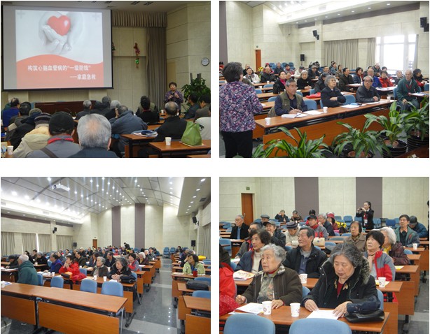 五十多位老同志和一些在职的职工参加了这次活动,老师讲的内容非常丰富,语言简明扼要,通俗易懂,针对心脑血管的疾病系统地讲解了一番,对个例进行了分析,对用药的时间、剂量也做了一定的指导,还讲解了突发情况时的急救知识,老同志们认真听讲,做笔记,还积极参予互动,最后大家针对这次讲座还进行了问题答卷,大家还建议:今后应该多举办这种类型的讲座,让我们的生活更加美好。