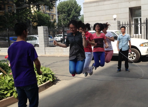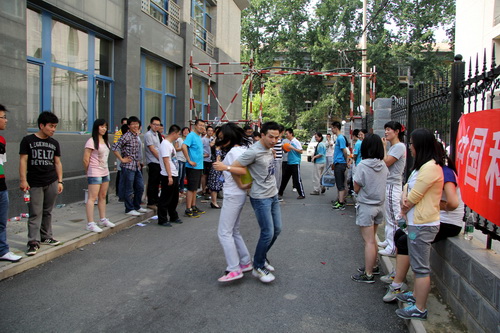 活动当日下午,新楼旁早早地聚满了参赛选手,积极进行热身等赛前准备。不惧炎炎烈日,同学们高昂的热情点燃了现场的气氛。此次运动会变“竞技”为“娱乐”,改“精英展现”为“全民参与”,大大地增加了运动会的参与度与趣味性。运动会共设置三个比赛项目:拔河比赛、背部夹球跑以及集体跳绳。首先由每个研究室选中10人参加的拔河比赛点燃了大家的激情,不仅赛场上竞争激烈,拉拉队的助威呐喊声更是震耳欲聋,新生代室一路所向披靡,摘得桂冠。之后由各研究室组成的参赛队进行了“背部夹球跑”以及“集体跳绳”趣味比赛,观众在一旁指点协助,大声助威,热闹非凡。