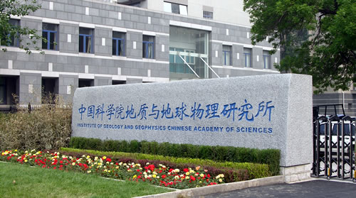 所大门口镌刻有“中国科学院地质与地球物理研究所”中英文名称的巨型花岗岩石碑, 2004年采自北京市房山区周口店附近著名的“房山花岗闪长岩体”,运抵后经加工、雕刻而成。石碑长9.88米,宽1.28米,高2.28米,重约80吨。
