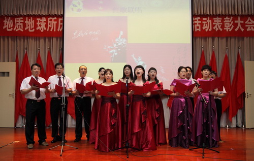 在庄严的国歌声中,地质地球所庆祝建党90周年暨创先争优表彰大会正式开始。受到表彰的先进集体和个人从所领导手中接过大红的证书。3名获奖代表分别作了先进事迹报告,先进集体和先进个人朴实而平凡的事迹深深打动了每位听众,广大党员从中受到启发,纷纷表示将自觉立足本职岗位,争当地学先锋。