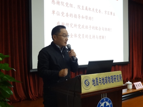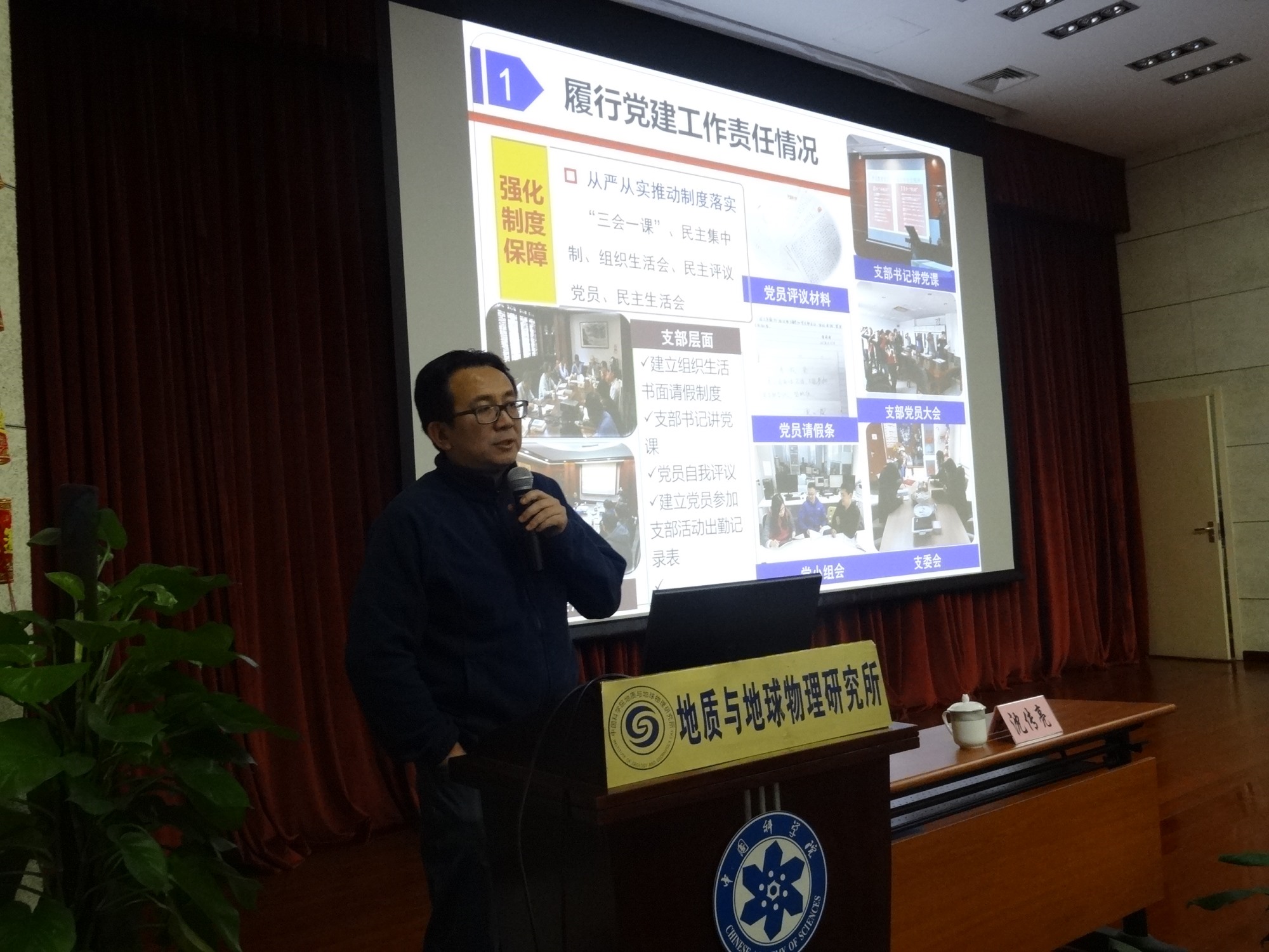 欧龙新书记从2017年履职情况、存在问题及改进措施和2018年工作思路进行了汇报。2017年所党委深入学习党的十八届六中全会、十九大精神,认真贯彻落实院党组、院直属机关党委和京区事业单位党委工作部署,按照“抓党建,聚合力,激活力,促率先”的工作思路,推动“两学一做”学习教育常态化制度化任务落实落地,引导基层组织和党员在科技创新中发挥战斗堡垒、先锋模范作用,为地球科学研究院建设增添动力。报告也对存在的问题及原因进行了分析,提出了今后努力的方向和举措。报告会后,与会党员代表结合述职情况以无记名投票方式进行了书面评议。