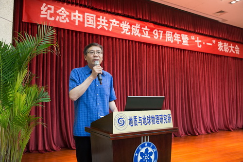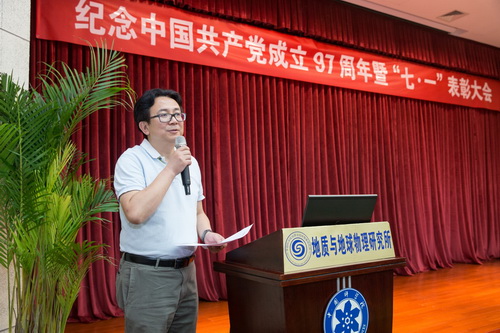 大会在庄严的国歌声中开幕。十九大召开以来,地质地球所各级党组织和广大党员深入学习贯彻落实习近平新时代中国特色社会主义思想和党的十九大精神,巩固“两学一做”学习教育常态化制度化成果,充分发挥了战斗堡垒和先锋模范作用。在迎接建党九十七周年之际,对先进典型进行表彰。所领导为受表彰的基层组织和党员颁发荣誉证书并合影留念。