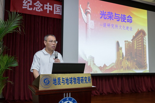 结合十九大学习和创新研究院建设,钟华作了题为《光荣与使命——谈研究所文化建设》的党课报告。以研究所史和人才队伍建设切入,从制度建设、精神层面、行为层面和园区环境建设四个方面进行研究所文化建设的剖析,重点分析了行为层面的十种表现,勉励广大党员立足“三个面向”“四个率先”办院方针,不忘初心,牢记使命,以严谨的治学态度,实事求是的学术作风,为建成英才聚集,创意勃发的地球科学创新研究院作出新的更大努力。