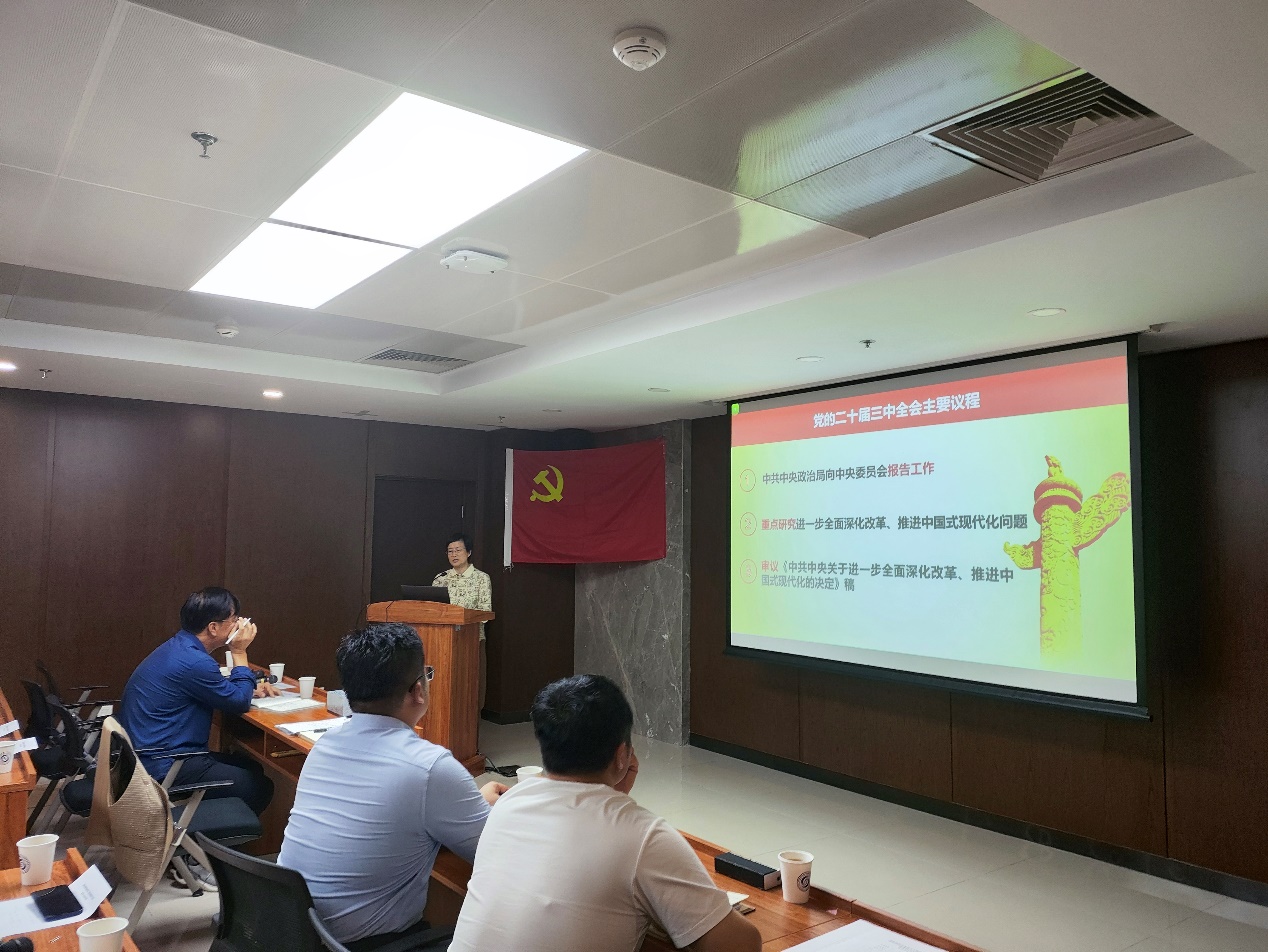 党员大会在雄浑的国歌合唱声中拉开了帷幕,底青云为全体支部党员做了题为“深入学习党的二十届三中全会精神,全力推进油气装备技术”的党课报告,带领大家深入学习了全会召开的时代背景和主要内容,重点解读了《中共中央关于进一步全面深化改革推进中国式现代化的决定》,同时结合实验室科研工作,号召全体党员要深入学习全会精神,努力提高责任担当,发挥模范带头作用;贯彻落实全会精神,全力推进油气装备技术攻关。最后,底青云以“宏伟蓝图鼓舞人心,时代号角催人奋进,深入学习全会精神,勇毅前行全力攻坚”对报告进行了总结。报告引发了参会党员的深度思考和热烈讨论。