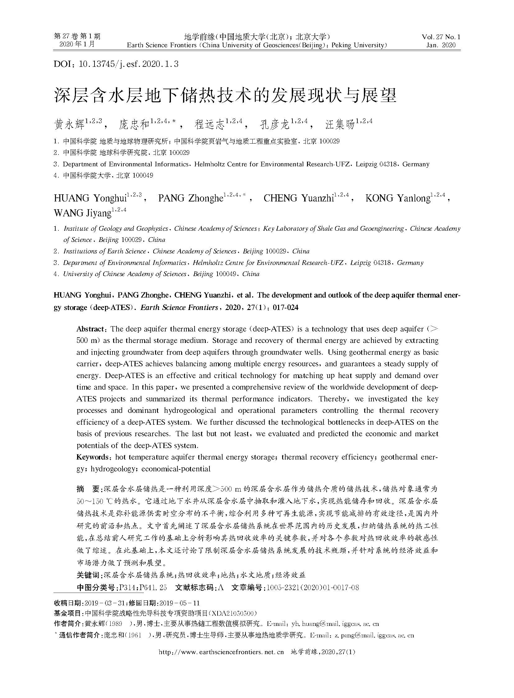 深层含水层地下储热技术的发展现状与展望
