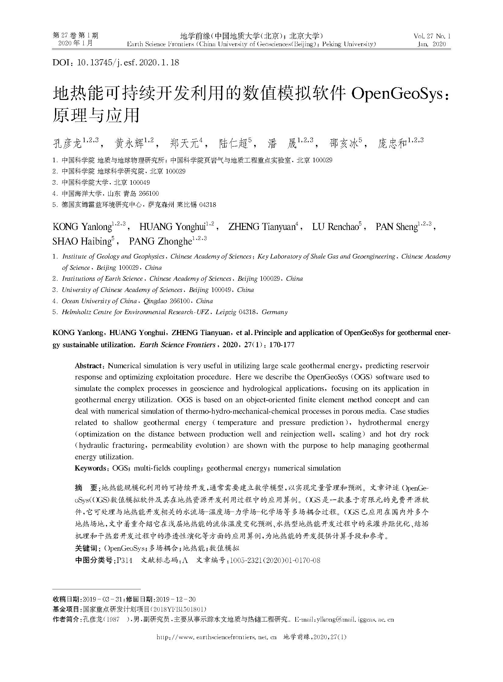地热能可持续开发利用的数值模拟软件OpenGeoSys:原理与应用