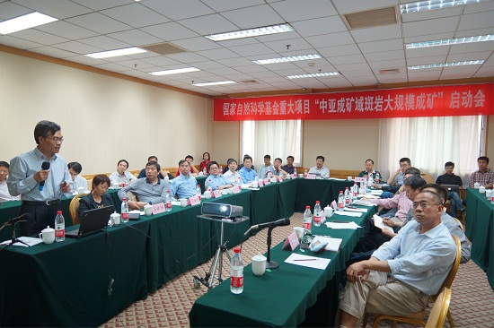 2014年5月17日,由中国科学院地质与地球物理研究所牵头承担的国家自然科学基金重大项目“中亚成矿域斑岩大规模成矿”启动会在北京外国专家大厦举行。国家自然科学基金委员会地球科学部、中科院前沿科学与教育局地球科学处主管领导以及来自中科院地质与地球物理研究所、青藏高原研究所、中国地质大学(北京)、北京大学、南京大学、吉林大学、中国地质科学院地质研究所和北京矿产地质研究院等单位的重大项目学术领导小组成员、特邀专家、项目依托单位领导、项目所属五个课题负责人、研究骨干及部分参与项目的研究生等40余人出席了会议。