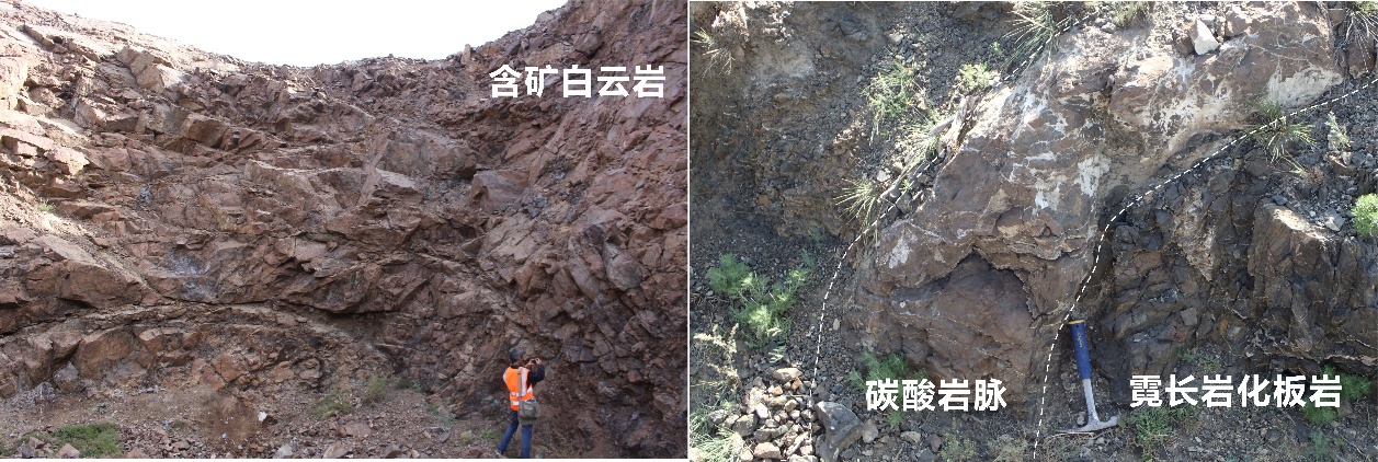 白云鄂博矿床含矿白云岩(左)和碳酸岩脉(右)