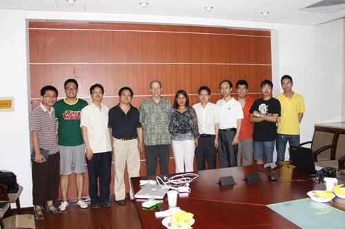 Lesher教授讲演结束后,大家就陨石撞击构造与特殊矿物(柯石英与微粒金刚石)的鉴别、撞击构造的近程、远程效应、镁铁岩的性质与源区、容矿石英闪长岩的形成过程、Ni、Cu、PGE金属的来源、Sudbury陨击成因矿床与正常幔源岩浆熔离-分异成因硫化物铜镍铂矿床之间的异同与可比性等前沿问题展开了热烈的讨论,给我们的研究工作带来多方面的借鉴与启发。
