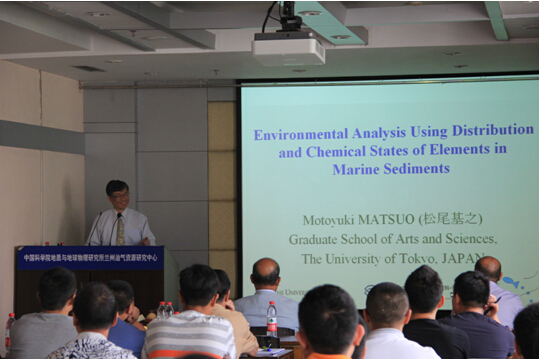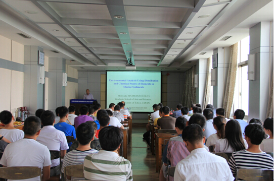 Motoyuki MATSUO(松尾基之)教授的报告题目为“Environmental Analysis Using Distribution and Chemical States of Elements in Marine Sediments”。他详细介绍了取样地点,取样工具及其过程,样品的前处理及分析测试方法,通过中子活化分析(INAA)以及化学态分析对河口和海岸沉积物中不同元素进行研究,并给出其纵向分布及富集规律,并提出高分辨率岩心取样分析(3cm-0.6cm)能够对环境起到很好的监测作用。