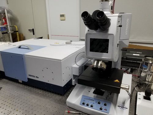 德国布鲁克,型号为VERTEX 70V; HYPERION 2000型红外显微镜; 可广泛应用于矿物学、岩石学、矿床学、古生物和环境科学等领域,物质官能团定性分析;物质成分的定量分析; 物质结构显微成像;