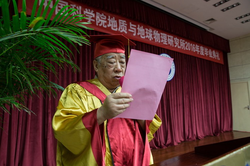 中国科学院地质与地球物理研究所2016年度毕业典礼于6月6日在研究所地3楼二层报告厅举行。