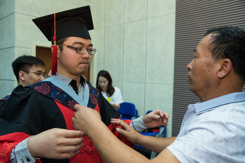 7 典礼上的父爱:扶正学位服流苏前的幸福时刻