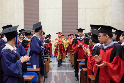 最后,毕业生与所领导、参加典礼的学位委员会委员、导师集体合影,并在毕业签名墙、纪念衫上签名留念,将毕业典礼活动推向高潮。