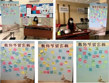 “教师节留言板”和“为老师清洗眼镜”活动现场
