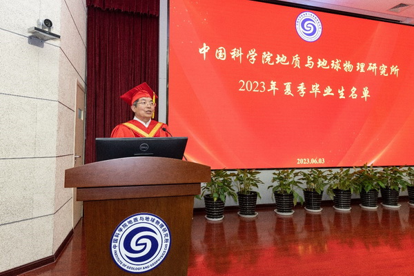 潘永信院士宣读了“中国科学院地质与地球物理研究所学位委员会2023年夏季学位授予决定”,建议授予宫畅等78名同学博士学位、授予胡琪鑫等32名同学硕士学位。