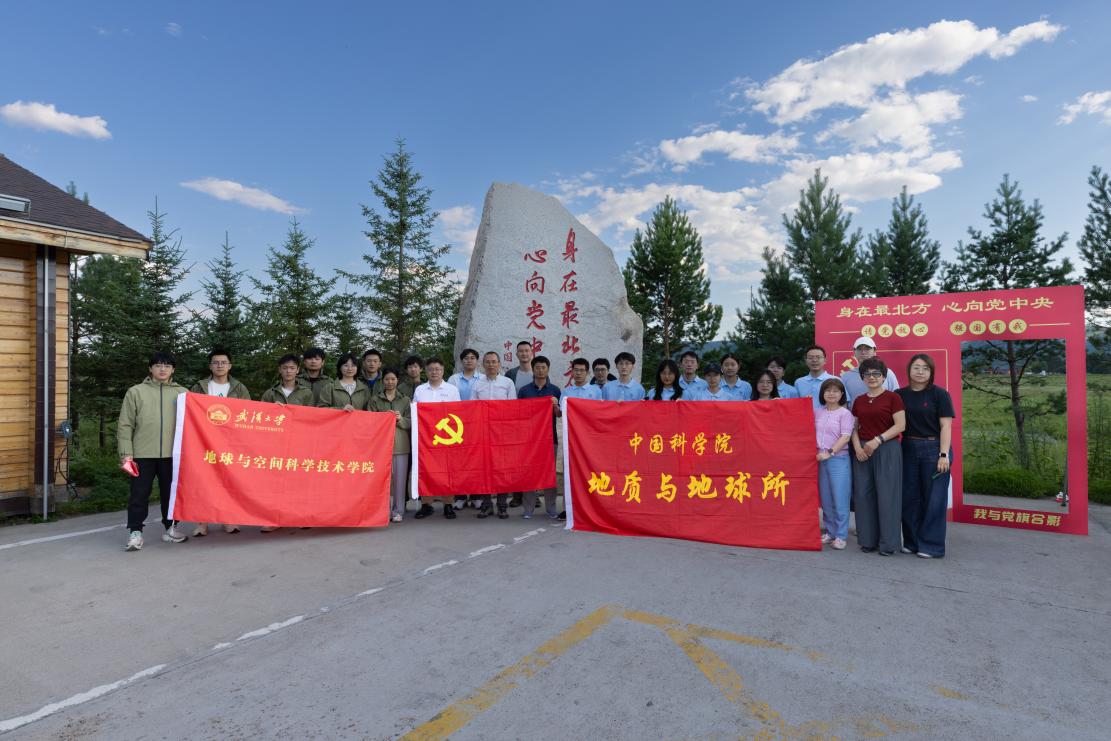 实习期间,结合当地实际,将思政教育融入了野外实习。由师生组成的野外实习临时党支部,与北极村党支部、武汉大学实习团队临时党支部一起,以“身在最北方、心向党中央”为主题开展了联学共建活动。通过参观北极村流动党员驿站,带领同学回顾北极村的历史,聆听驻扎在这片土地上默默奉献的优秀党员事迹,激发同学们责任感和使命感。参观途中,刘立波研究员带领党员同学们在庄严的党旗下重温入党誓词,重忆入党初心,再次接受党性洗礼。重温入党誓词不仅是对过去的回顾,更是对未来的承诺,同学们纷纷表示,今后将坚持理想,锤炼党性作风,践行出行使命,始终以共产党员的标准来严格要求自己,在学习生活中发挥积极作用。