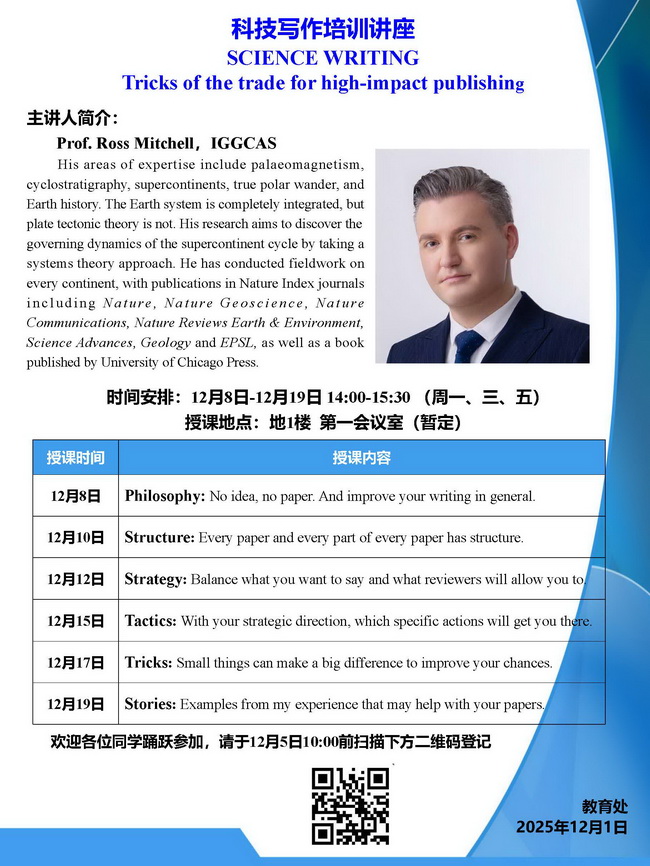 【12.8--12.19】科技写作培训讲座:Prof. Ross Mitchell