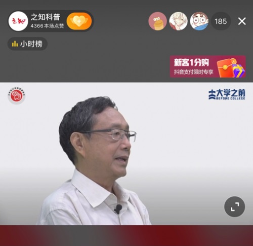 据了解,在本次开学科普季活动中,除了翟明国院士关于地质学科普的分享,抖音邀请邬贺铨、陈征等40位各个领域的专家学者,在9月1日至9月30日期间,围绕科学、艺术、文化等领域,通过在线直播的方式传播权威、专业的科普知识,分享他们的人生选择和思考。该活动致力于通过短视频直播联动各领域大家,激发青少年的学习兴趣、拉近人们和科学的距离。