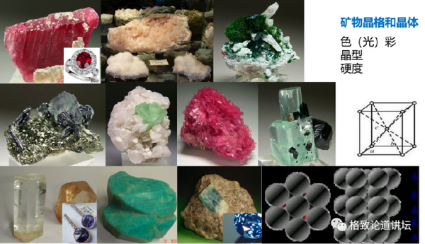 岩石又是由矿物组成。矿物有不同的色彩,包括我们平常大家都喜爱的金刚石,红宝石、蓝宝石、祖母绿等。部分矿物还是重要的尖端材料,是我们非常难以人工合成的,能应用于高精度的高科技制造。