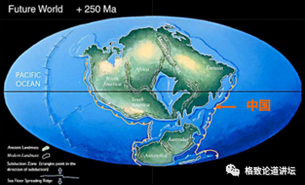 有科学家根据现在板块漂移的速度,认为再过2.5亿年大陆又会重新汇聚一次,就像上面那张图所表示的。