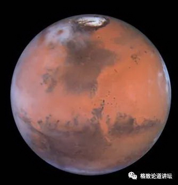 下面是火星行将入木,颜色暗淡,已经没有大气和水。