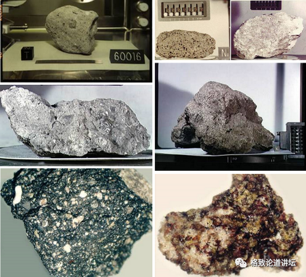 月球的岩石样品跟地球的岩石样品是有差别的。除了斜长岩以外,它还有玄武岩。玄武岩比较常见,大家去五大连池、长白山都可以看到。但月球还有地球上无法见到克里普岩,它是一种含钾、稀土元素很高的岩石。另外,月球上没有地球上最主要的陆壳岩石类型——花岗岩。
