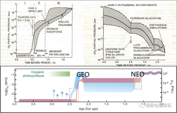 目前人们认识到地球有两次大的氧化事件,一个是GOE(古元古代氧化事件),发生在大概到23.5亿-22亿年前;还一个叫NOE(新元古代氧化事件),发生在6亿-7亿年前。这两次大氧化事件使地球上的氧发展到现在的水平。