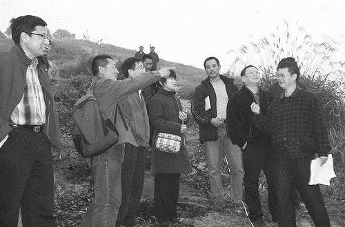 专家在中国散裂中子源场址大朗镇水平村南现场勘查。