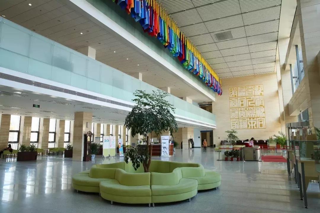 国科大雁栖湖图书馆大厅顶部119面旗帜
