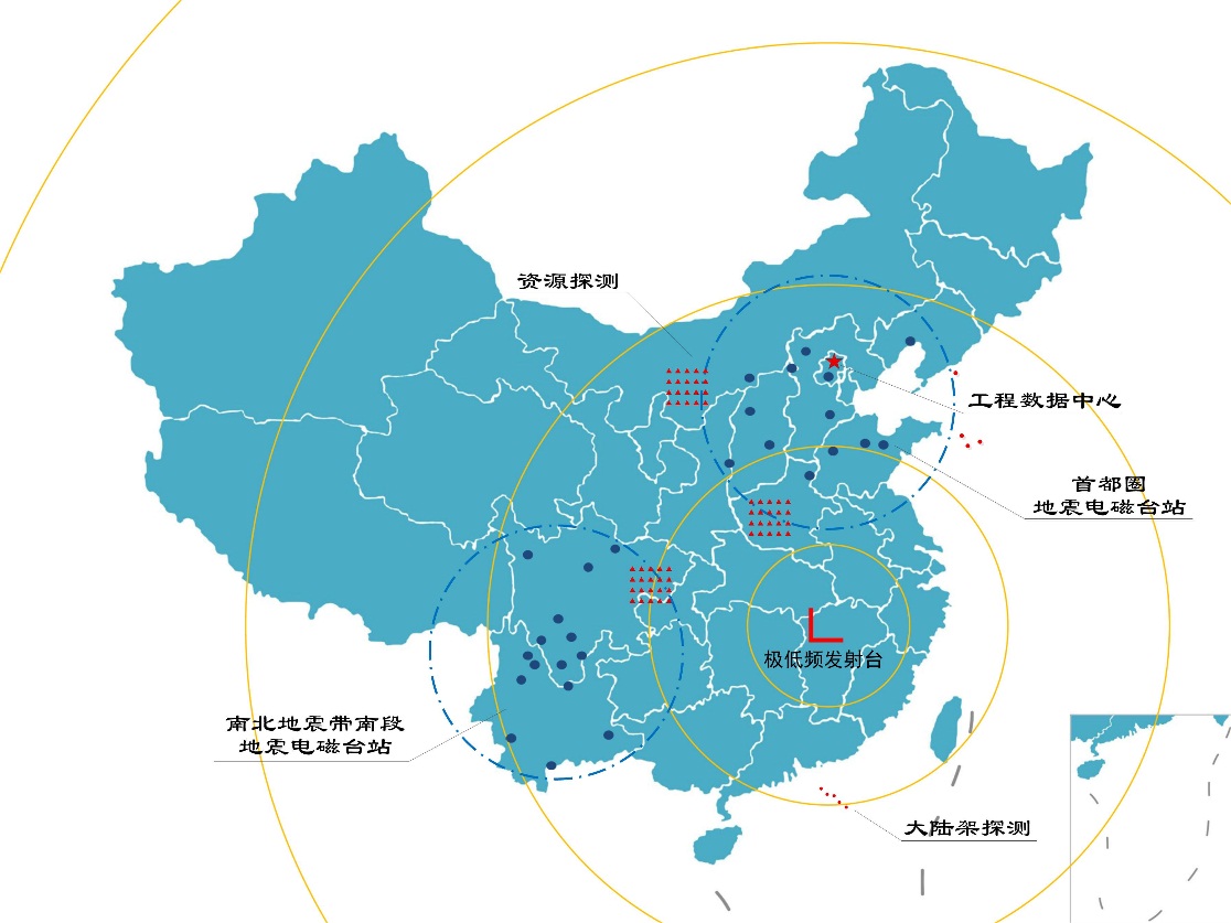 该项目还在首都圈和南北地震带南端,建成了首个可同时接收人工源和天然源极低频电磁信号地震监测台网;攻克了极低频电磁信号组网接收、数据处理反演等关键技术,实现对不同地层电性结构的三维探测;建立了极低频数据工程中心,为资源探测、地震预测和其它前沿技术研究搭建了高性能的数据计算、共享服务平台。