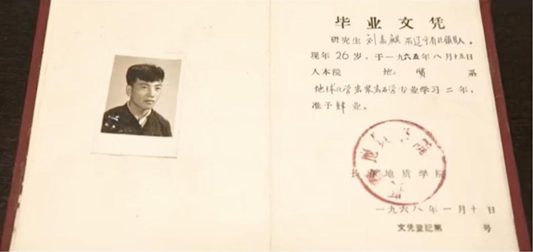 刘嘉麒在长春地质学院就读本科与研究生,图为毕业证书