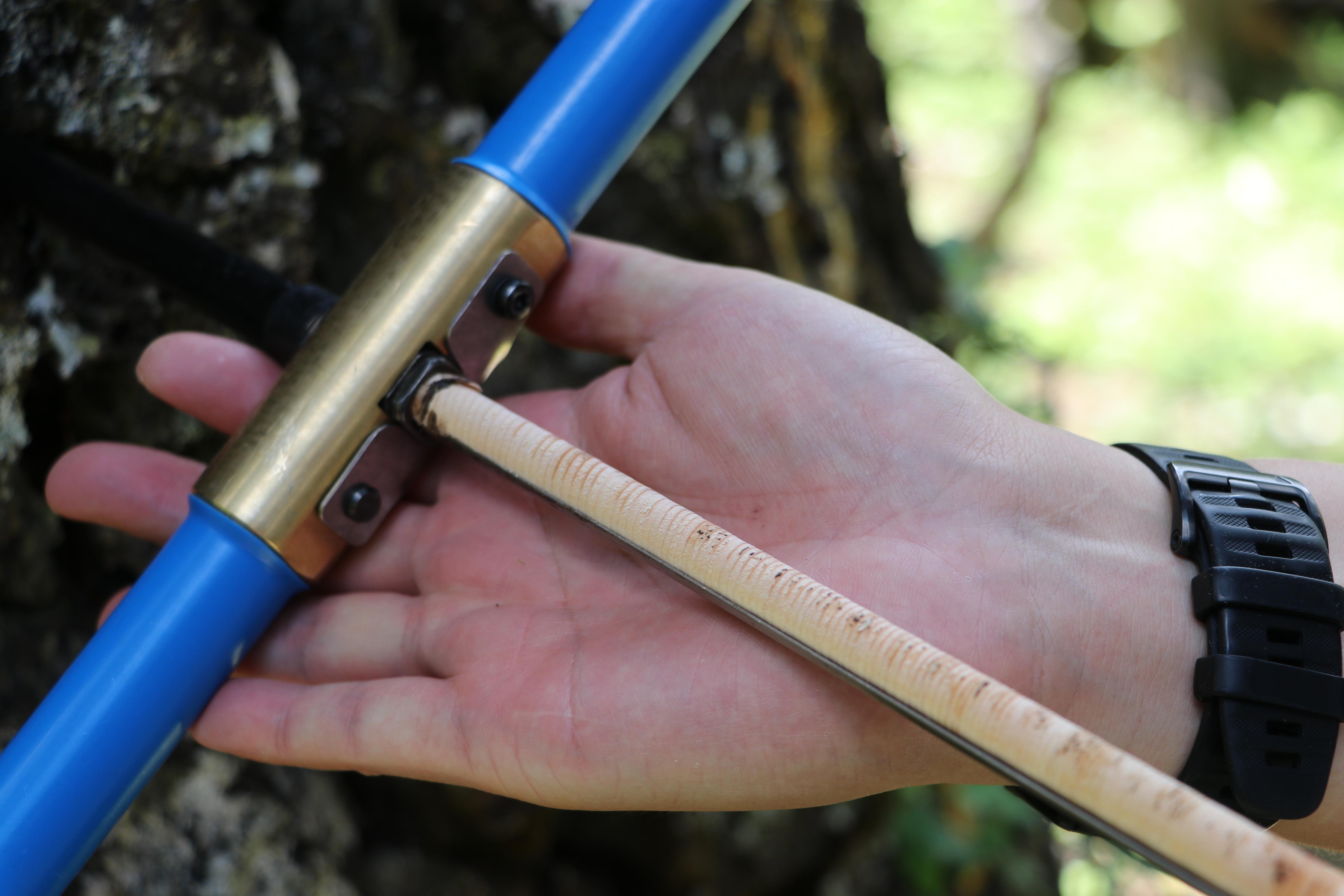 采样工具叫作“生长锥”,空心钻杆拧进树干,钻出一根仅相当于铅笔粗细的木芯。不过,钻杆打进去容易,拔出来难。“有一次在塞尔维亚取样,打钻进去只花了20分钟,取出来却用了一天半的时间。”许晨曦解释说,针叶树受伤时会分泌树脂,打钻时摩擦生热,树脂融化后会粘住工具外壁,导致难以拔出。