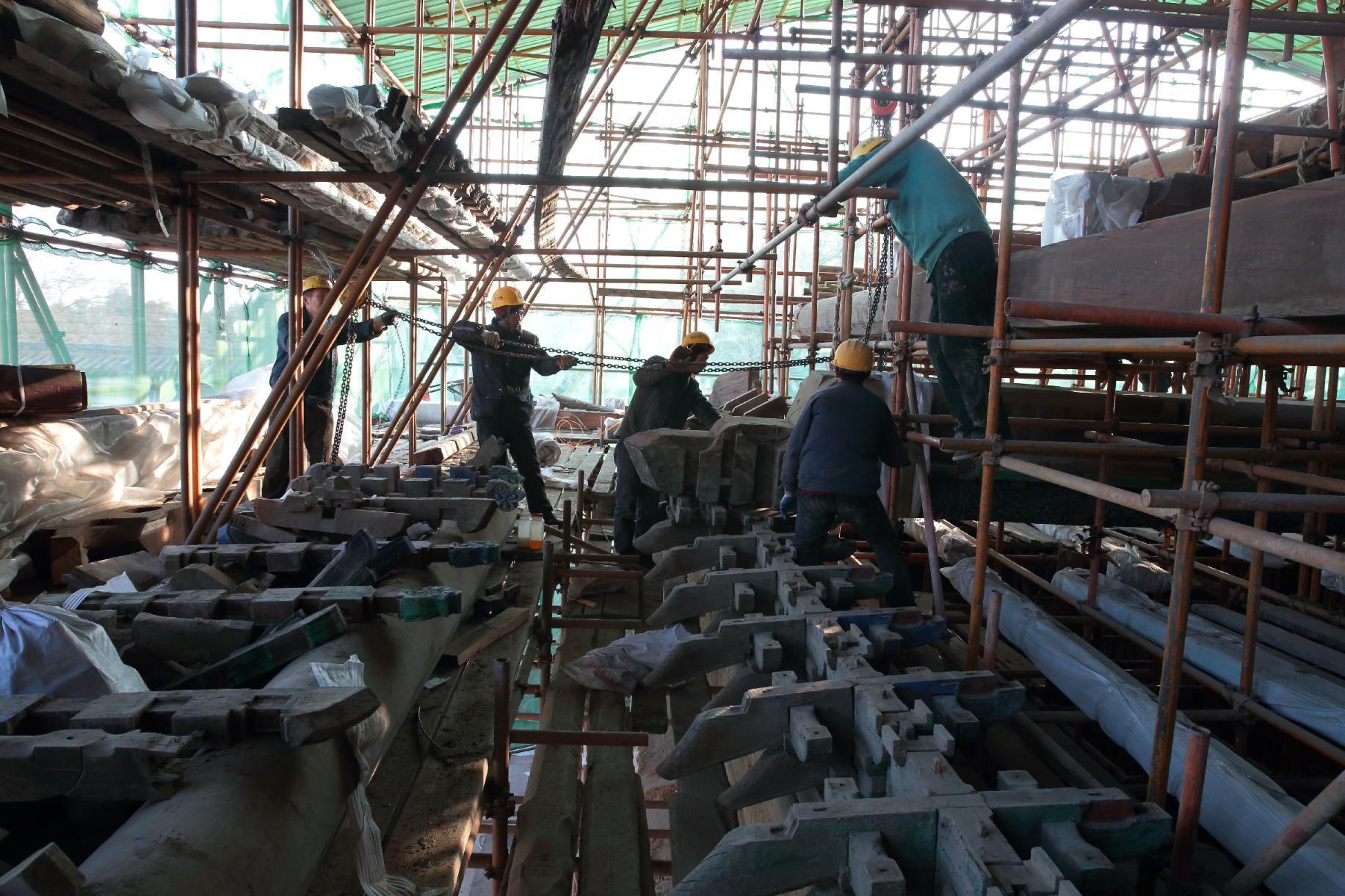 大高玄殿区域九天应元雷坛大木落架过程