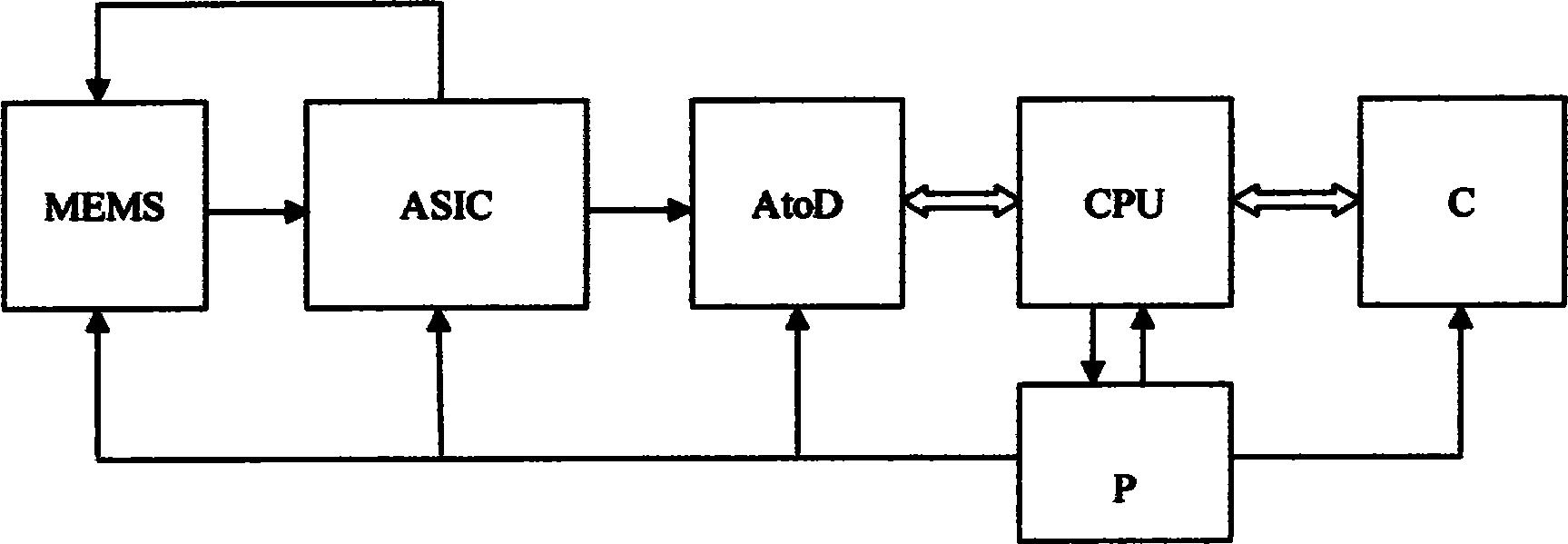 本发明涉及一种MEMS数字地震检波器,为解决现有地震检波器灵敏度和抗干扰能力差问题,其由采集地震信号的MEMS地震传感器,用于低噪音电容信号放大和模拟力反馈的弱信号检测及反馈电路,将来自弱信号检测及反馈电路的模拟地震信号转化成数字信号的数字化单元,用于控制数字化单元、通信单元和供电电路的控制电路,用于接收主机系统控制命令和完成采集数据上传的数据通信单元和用于向前述五单元供电的供电电路六大单元组成。所述MEMS地震传感器和弱信号检测及反馈电路直接连接并集成为一体。所述控制电路为嵌入式CPU。所述MEMS地震传感器采用三层硅片三明治结构,采用八梁支撑、上下对称的双面梁质量块结构单片制作。其具有重量轻、体积小、灵敏度高、响应速度快、频带宽、动态范围大、畸变小、小信号识别能力和抗干扰能力强,可靠性好的优点。 |