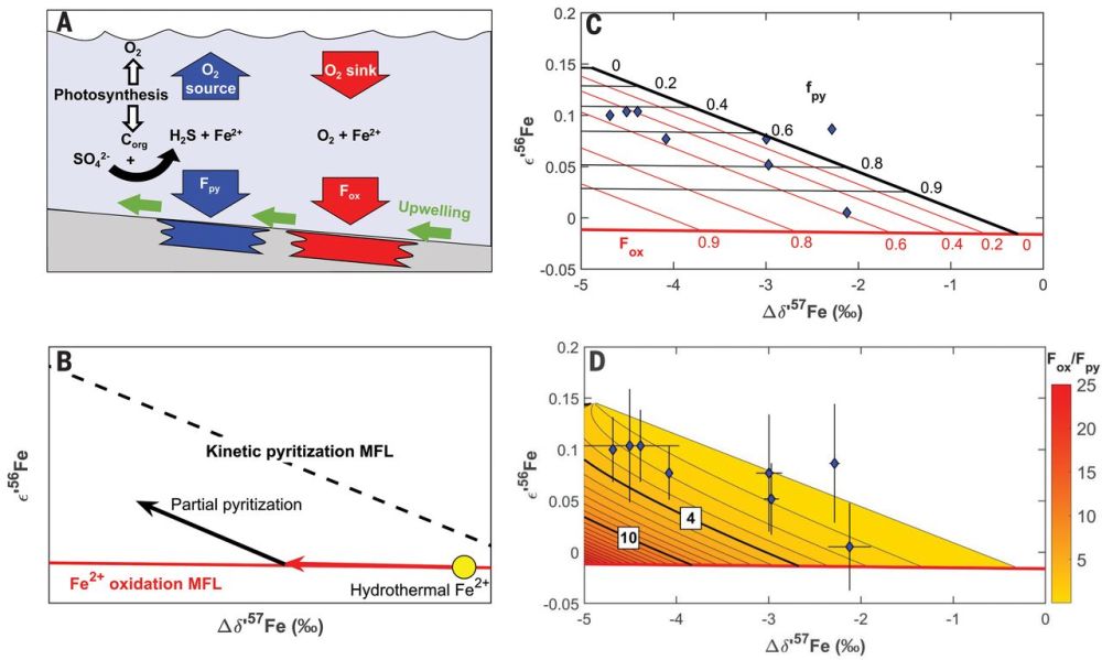 Heard A W, Dauphas N, Guilbaud R, et al. Triple iron isotope constraints on the role of ocean iron sinks in early atmospheric oxygenation [J]. Science, 2020, 370(6515): 446-449. (链接)