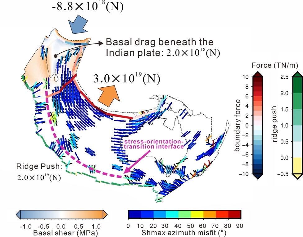 该项研究一方面为具体科学问题提供了答案,另一方面展示了如何从地球整体动力系统的角度来讨论板块构造问题。地球动力系统的运行过程和机制是复杂的,在约束不足的情况下存在多解性。通过在高精度全球三维框架下聚焦区域构造的研究方法,将多种因素同时放入一个耦合系统中进行整体评估,并结合多种观测数据进行约束,该研究不仅确定了各驱动力的相对重要性,还提供了定量的力的计算结果(图5)。这一研究方法或能为未来的地球动力学研究提供更为有效和全面的研究框架,使其真正朝着解析地球动力系统的方向迈进。