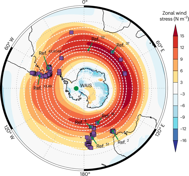Perren B B, Hodgson D A, Roberts S J, et al. Southward migration of the Southern Hemisphere westerly winds corresponds with warming climate over centennial timescales[J]. Communications Earth & Environment, 2020, 1(1): 58.