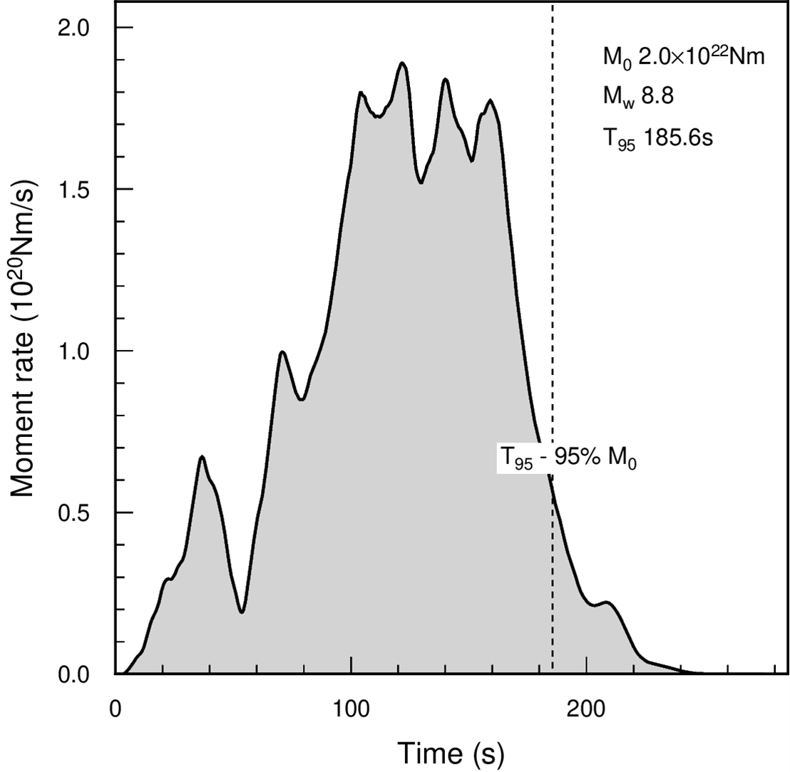 1.地震类型:此次地震为低角度逆冲型地震,矩震级为Mw 8.8,地震矩约为2.0 × 1022 Nm。